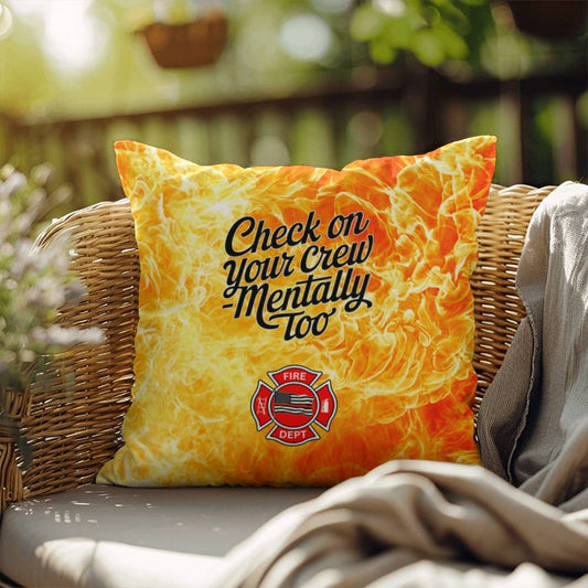 Firefighter Support Custom Indoor/Outdoor Pillow - Check on Your Crew - Mentally Too, First Responder Support