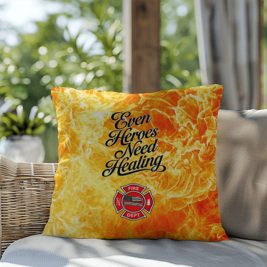 Firefighter Support Custom Indoor/Outdoor Pillow - Even Heros Need Healing, Firefighter Mental Wellness