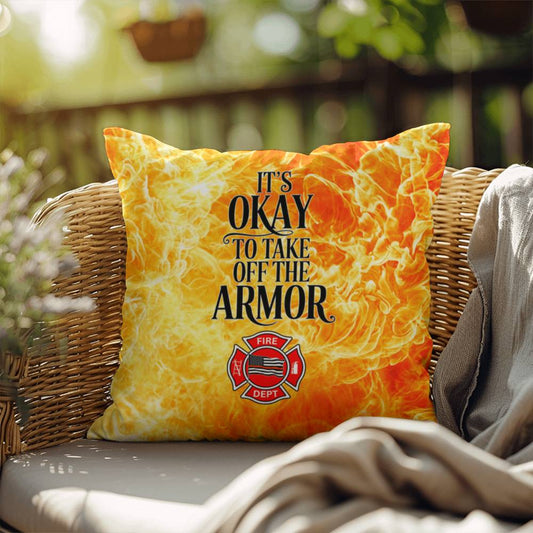 Firefighter Support Custom Indoor/Outdoor Pillow - It's Okay To Take Off The Armor, Firefighter Mental Wellness