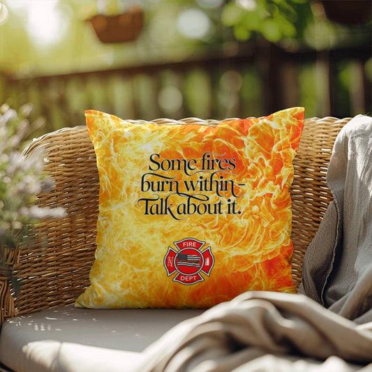 Firefighter Support Custom Indoor/Outdoor Pillow - Some Fires Burn Within - Talk About It, Mental Health Awareness