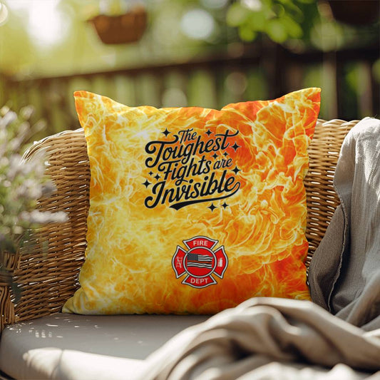 Firefighter Support Custom Indoor/Outdoor Pillow - The Toughest Fights Are Invisible, PTSD Support for Firefighters