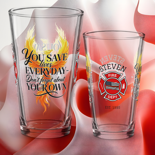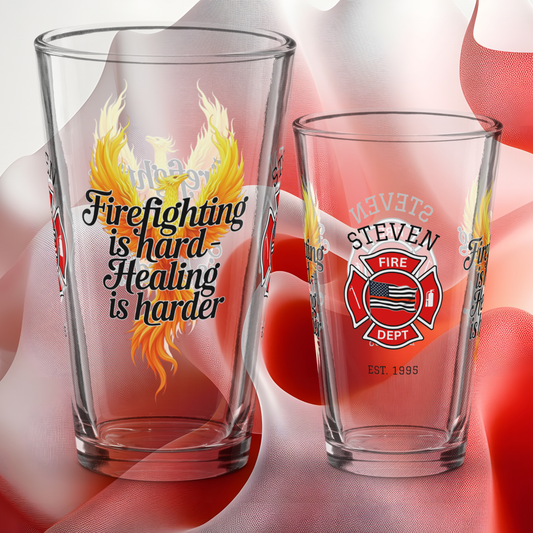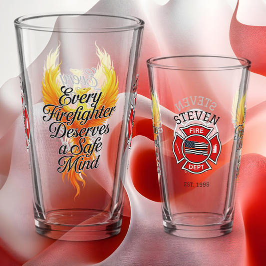Honor the courage and dedication of firefighters with our Personalized Firefighter Support Pint Glass Collection. Each glass celebrates bravery, resilience, and service with powerful designs and heartfelt messages. Add a name or custom text for a personal touch - perfect for promotions, retirements, or everyday appreciation. Thoughtful and meaningful, these firefighter-themed pint glasses make a lasting tribute to the heroes who protect and inspire us.