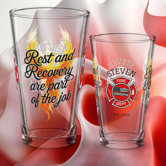 Rest and Recovery Are Part of the Job - Firefighter Support Pint Glass, Emotional Balance Gift