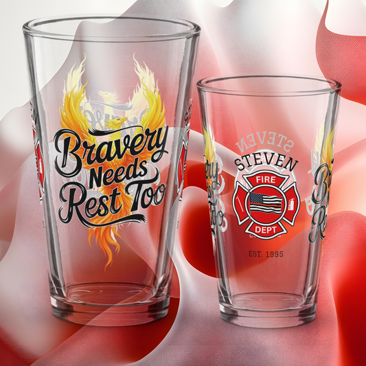 Bravery Needs Rest Too - Firefighter Support Pint Glass, Personalized Wellness & Recovery Gift