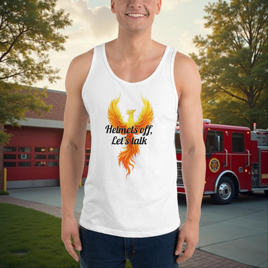 Helmets Off, Let's Talk - Custom Firefighter Mental Health Awareness Tank, PTSD Support Gift Shirt