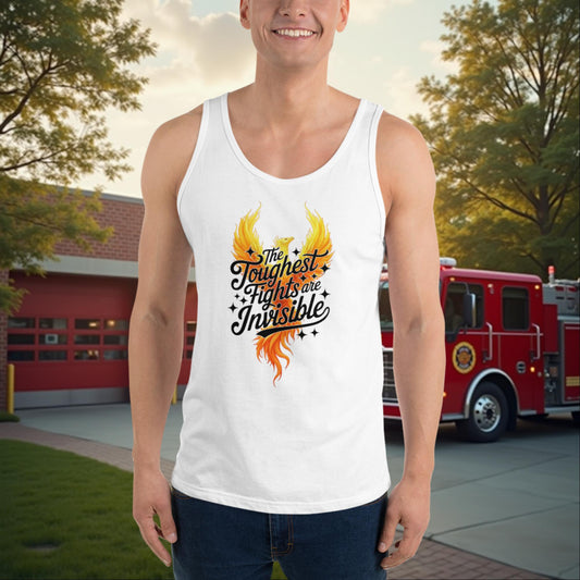 The Toughest Fights Are Invisible - Custom Firefighter PTSD Awareness Tank, Mental Health Support Shirt