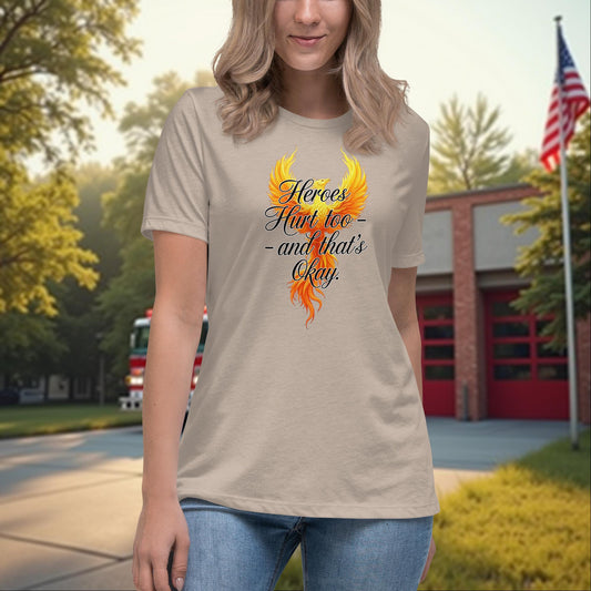 Heroes Hurt Too Women’s Relaxed T-Shirt - Firefighter Resilience and Mental Health Support Awareness Tee