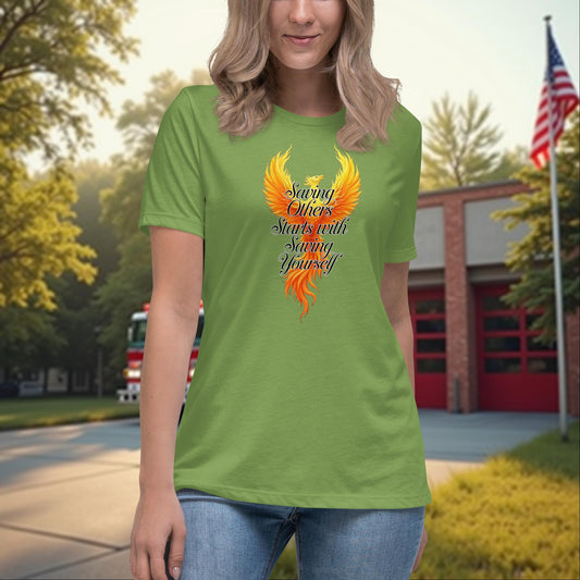 Saving Others Starts With Saving Yourself Women’s Relaxed T-Shirt - Firefighter Self-Wellness and Support Shirt
