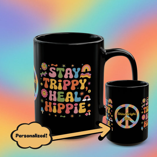 Stay Trippy, Heal Hippie Retro 70s Mug - Groovy Self-Care Mental Wellness Gift