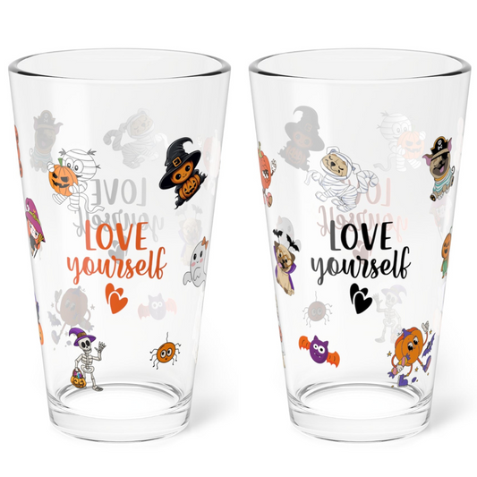 Love Yourself Halloween Pint Glass 16oz - Positive Sips & Halloween Fun