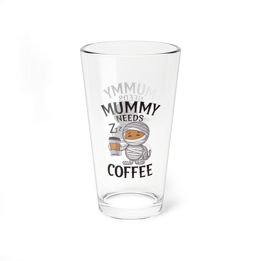 Mummy Needs Coffee Halloween Pint Glass 16oz - Halloween Party Drinkware & Fun