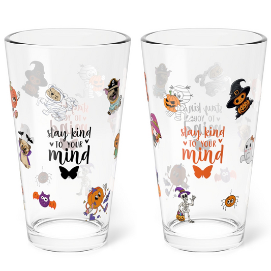 Stay Kind To Your Mind Halloween Pint Glass 16oz - Positive Fall Fun & Self-Care