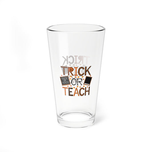 Teach Or Trick Halloween Pint Glass 16oz - Halloween Fun Twist for Teachers