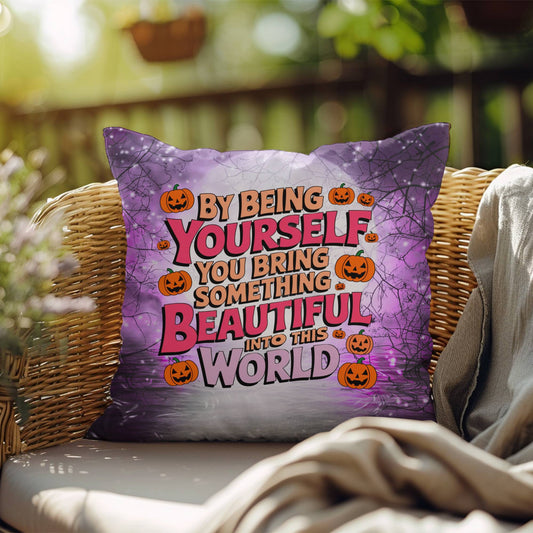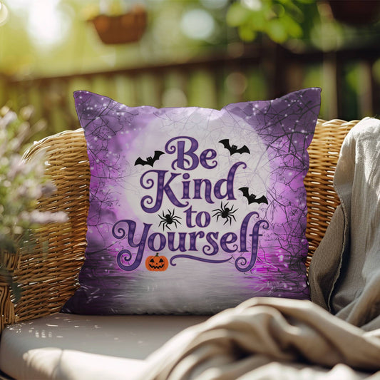 Be Kind To Yourself Halloween Indoor Outdoor Throw Pillow for Positivity