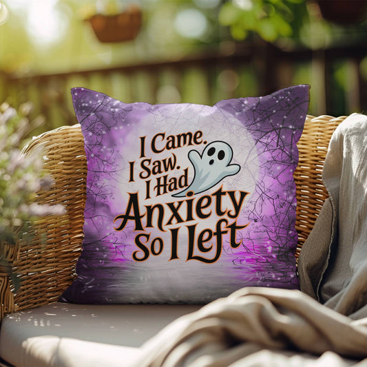I Came. I Saw. I Left. Funny Halloween Indoor Outdoor Throw Pillow
