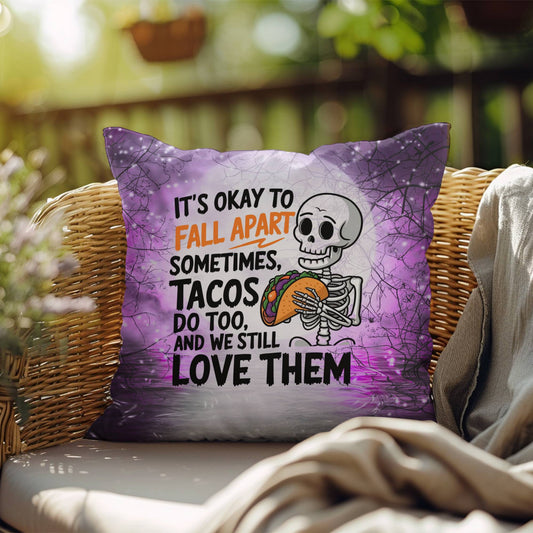 It's Okay To Fall Halloween Indoor Outdoor Inspirational Throw Pillow