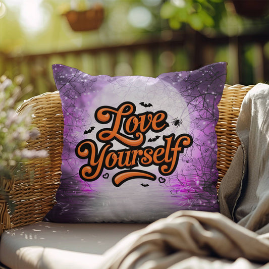 Love Yourself Halloween Indoor Outdoor Self-Care Throw Pillow