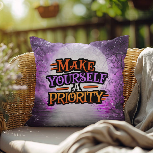 Make Yourself A Priority Indoor Outdoor Motivational Throw Pillow