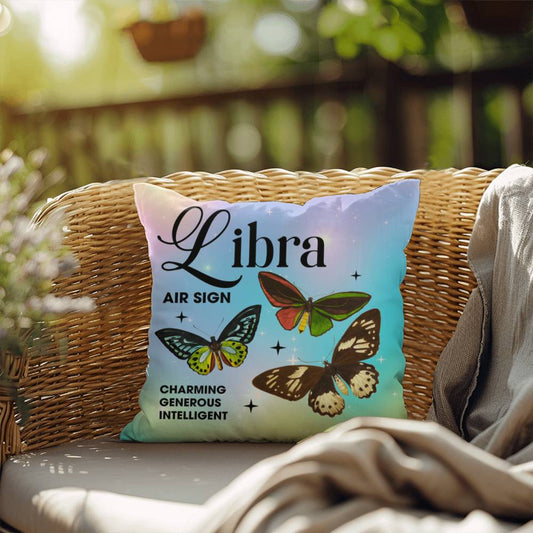 Libra Butterfly Indoor/Outdoor Pillow - Zodiac Accent Pillow, Celestial Home Decor for Outdoor & Indoor
