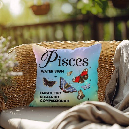 Pisces Butterfly Indoor/Outdoor Pillow - Astrology Decor, Cosmic Pillow for Patio & Home
