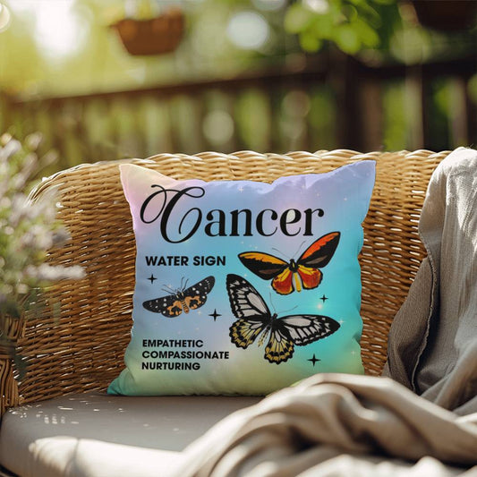 Cancer Butterfly Indoor/Outdoor Pillow - Zodiac Sign Pillow, Mystical Accent for Home & Patio