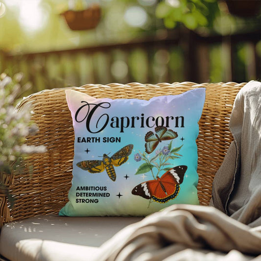 Capricorn Butterfly Indoor/Outdoor Pillow - Astrology Decor, Cosmic Pillow for Patio & Living Room