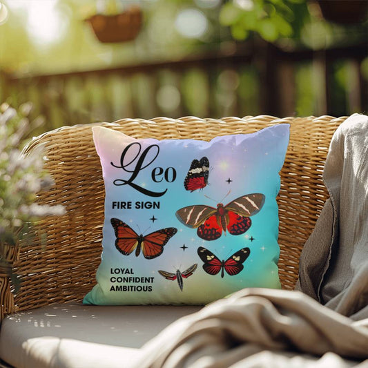 Leo Butterfly Indoor/Outdoor Pillow - Astrology Pillow, Mystical Home Decor for Living Room & Patio