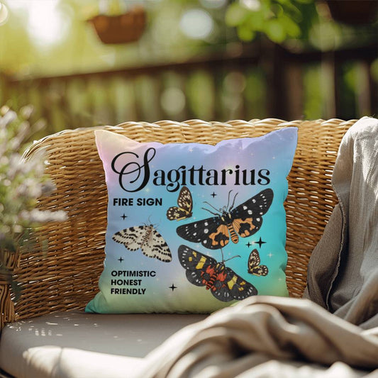 Sagittarius Butterfly Indoor/Outdoor Pillow - Zodiac Decor, Celestial Accent for Living Room & Patio