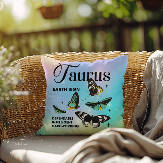 Taurus Butterfly Indoor/Outdoor Pillow - Zodiac Sign Pillow, Cosmic Decor for Patio & Living Room