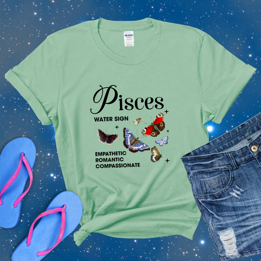 Pisces Butterfly Zodiac T-Shirt - Astrology Tee, Horoscope Gift, Pisces Birthday Shirt