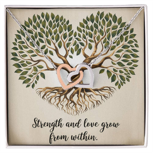 Strength and Love Grow From Within - Interlocking Hearts Necklace Gift
