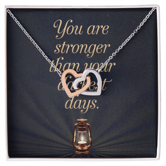 You Are Stronger Than Your Darkest Days - Interlocking Hearts Necklace