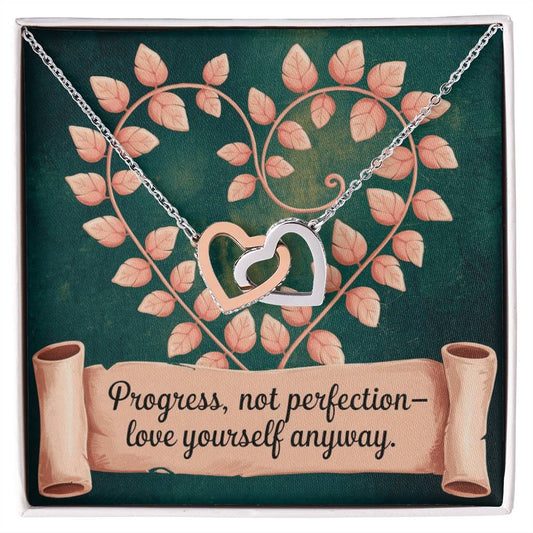 Progress, Not Perfection - Interlocking Hearts Necklace Motivational Gift