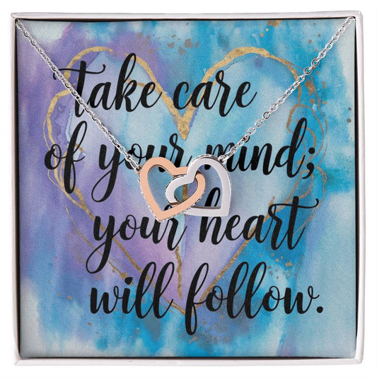 Take Care of Your Mind, Heart Will Follow - Interlocking Hearts Necklace