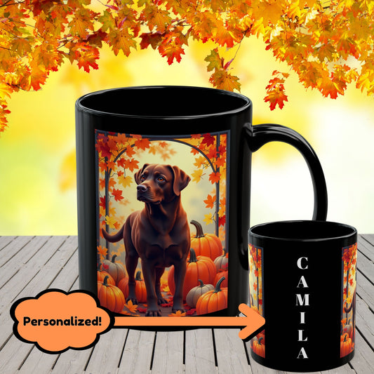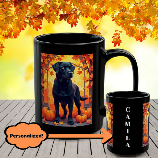 Labrador Retriever (Black) Autumn Mug - Personalized Fall Coffee Cup for Dog Lovers