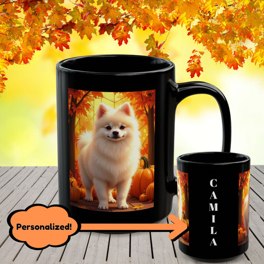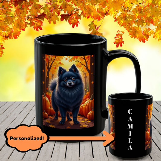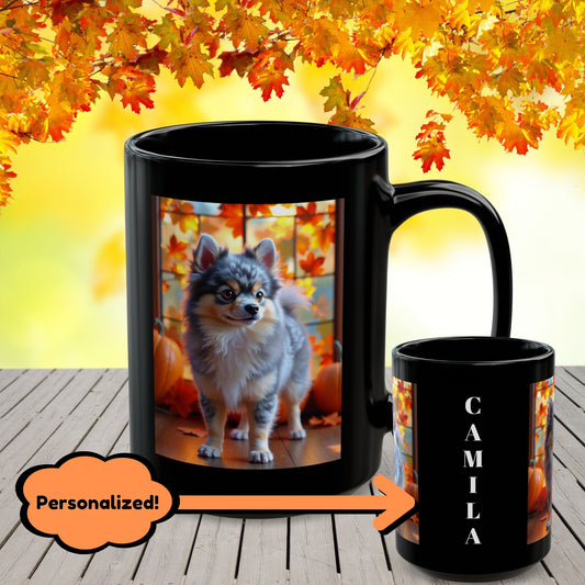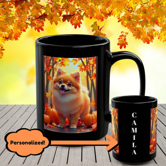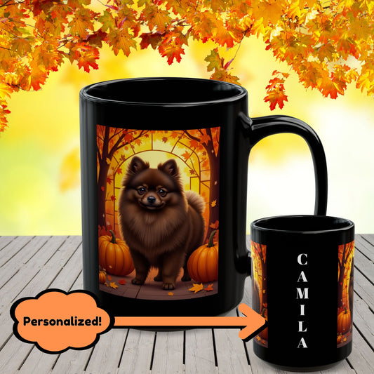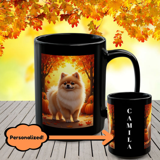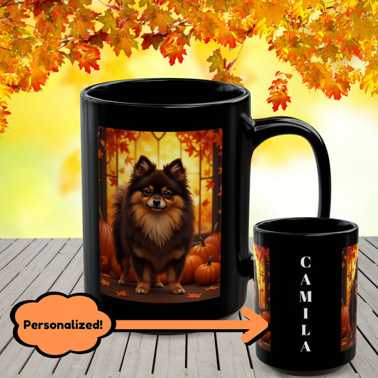 Pomeranian (Black) Autumn Coffee Mug - Custom Dog Parent Fall Drinkware, Personalized Gift