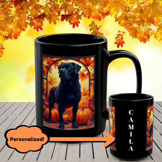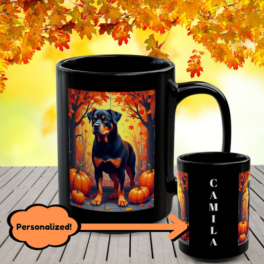 Rottweiler (Black) Mug - Personalized Fall Coffee Cup for Dog Owners, Custom Rottie Lover Gift Idea