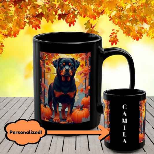 Rottweiler (Black) Personalized Mug - Custom Dog Coffee Cup Gift for Rottie Lovers, Fall Dog Parent Gift