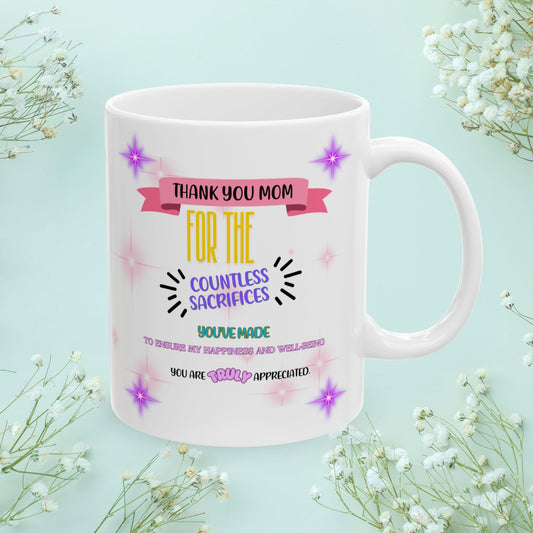Thank you, Mom, for the countless sacrifices.. Mother's Day Ceramic Mug (11oz, 15oz)