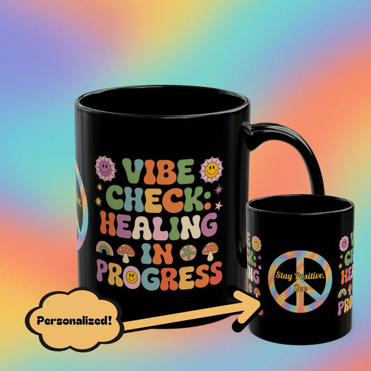 Vibe Check Healing in Progress Retro 70s Mug - Groovy Self-Care Coffee Gift
