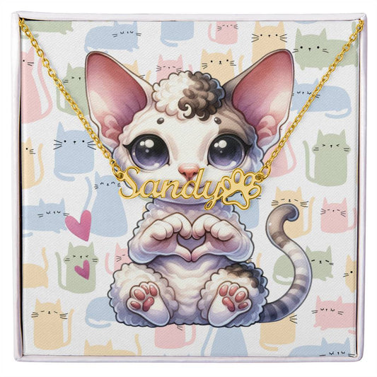 Devon Rex Cat - Personalized Name Necklace + Paw Print