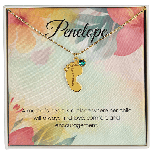 Engraved Baby Feet Necklace with Birthstone – A Mother's Heart: A Place of Love, Comfort & Encouragement | Perfect Gift for New Moms