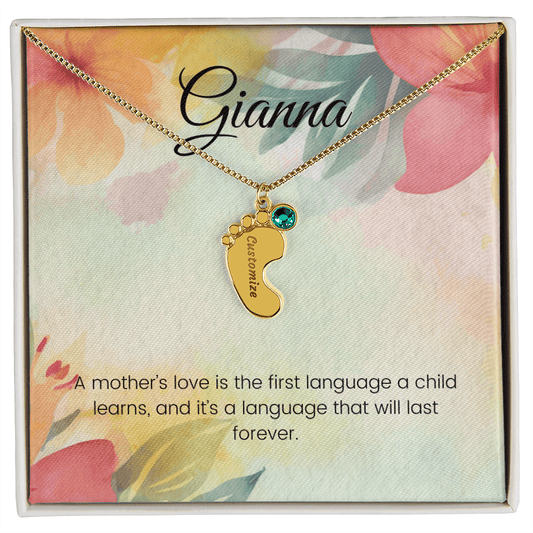 Engraved Baby Feet Necklace with Birthstone – A Mother's Love: The First Language of the Heart | Perfect Gift for New Moms