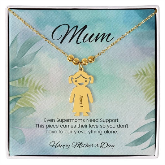 Even Supermoms Need Support - Custom Necklace with Engraved Kids Charms for Encouragement