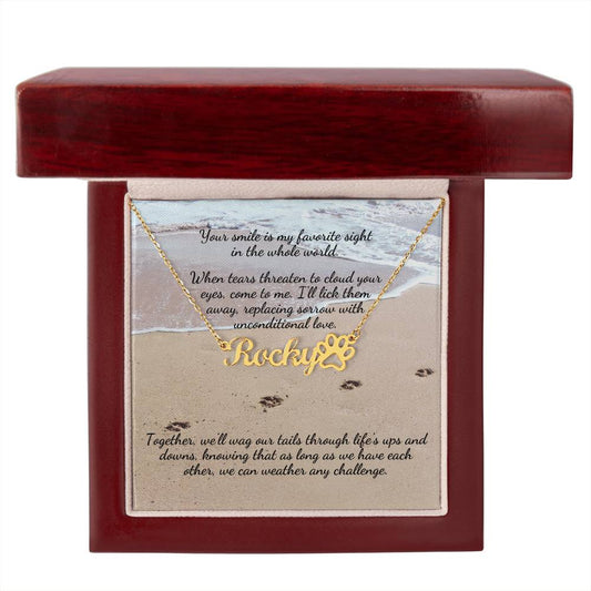 Your Smile Is My Favorite - Personalized Dog Name Necklace with Paw Charm, Gift for Dog Lovers & Unconditional Love