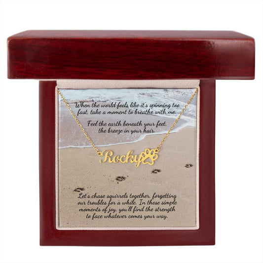 When the world feels like it's spinning too fast... Personalized Name Necklace + Paw Print