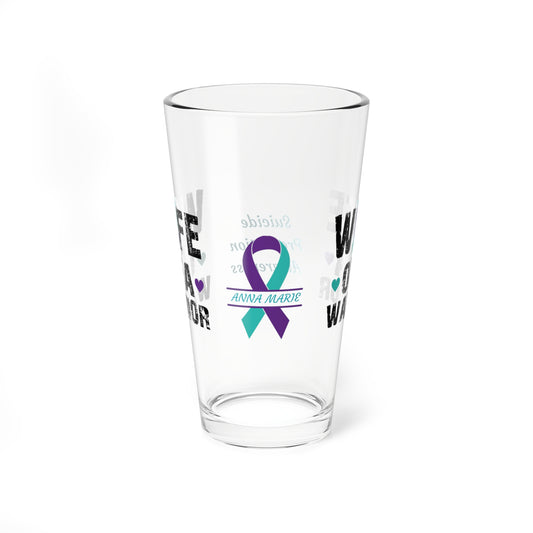 Wife of a Warrior: Personalized Suicide Prevention Awareness Warrior Pint Glass - Proud Family Member