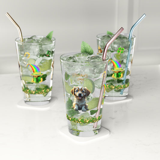 Zenful Zigzags of Puppy Zen: Mindful St. Patrick's Day 16oz Pint Glasses - Festive Design for Positivity & Wellness