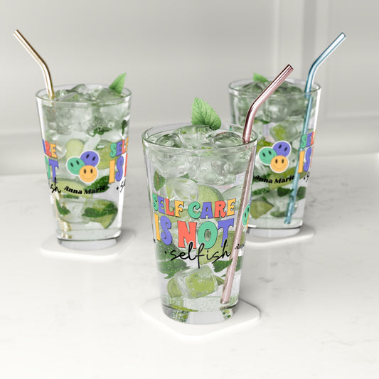 Self-Care is Not Selfish Retro Pint Glass - Custom Wellness Glass, Personalized Mental Health Drinkware for Daily Encouragement