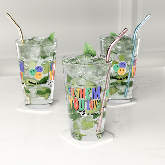 Tell Them You Love Them Retro Pint Glass - Personalized Mental Health Awareness Gift, Retro Drinkware for Supportive Reminders
